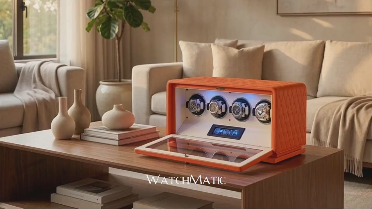 Utilizzare il tuo carica-orologio è semplice e intuitivo: posiziona l'orologio saldamente sul cuscino, imposta il senso di rotazione (orario, antiorario o alternato) e seleziona il numero di giri al giorno (TPD) appropriato. Il carica-orologio ruoterà quindi l'orologio a intermittenza, mantenendone la riserva di carica e la precisione.