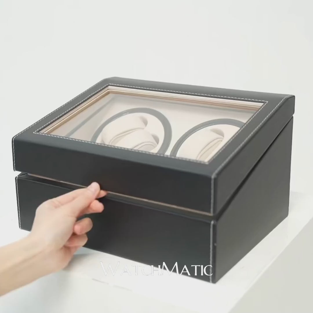 I nostri caricatori utilizzano un sistema di rotazione controllata che alterna movimenti fluidi a intervalli di riposo bilanciati, mantenendo l'orologio carico senza inutili sforzi. Questo delicato schema intermittente favorisce la precisione, protegge i componenti delicati e garantisce che il tuo orologio automatico rimanga pronto all'uso senza il rischio di sovraccaricarlo.